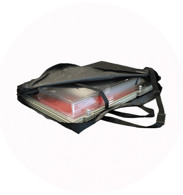 The tops and bottoms separate and “nest” inside each other, giving you great mobility. Five cases stacked vertically are 22.86 cm tall versus the old-style showcases at 40.64 cm.
